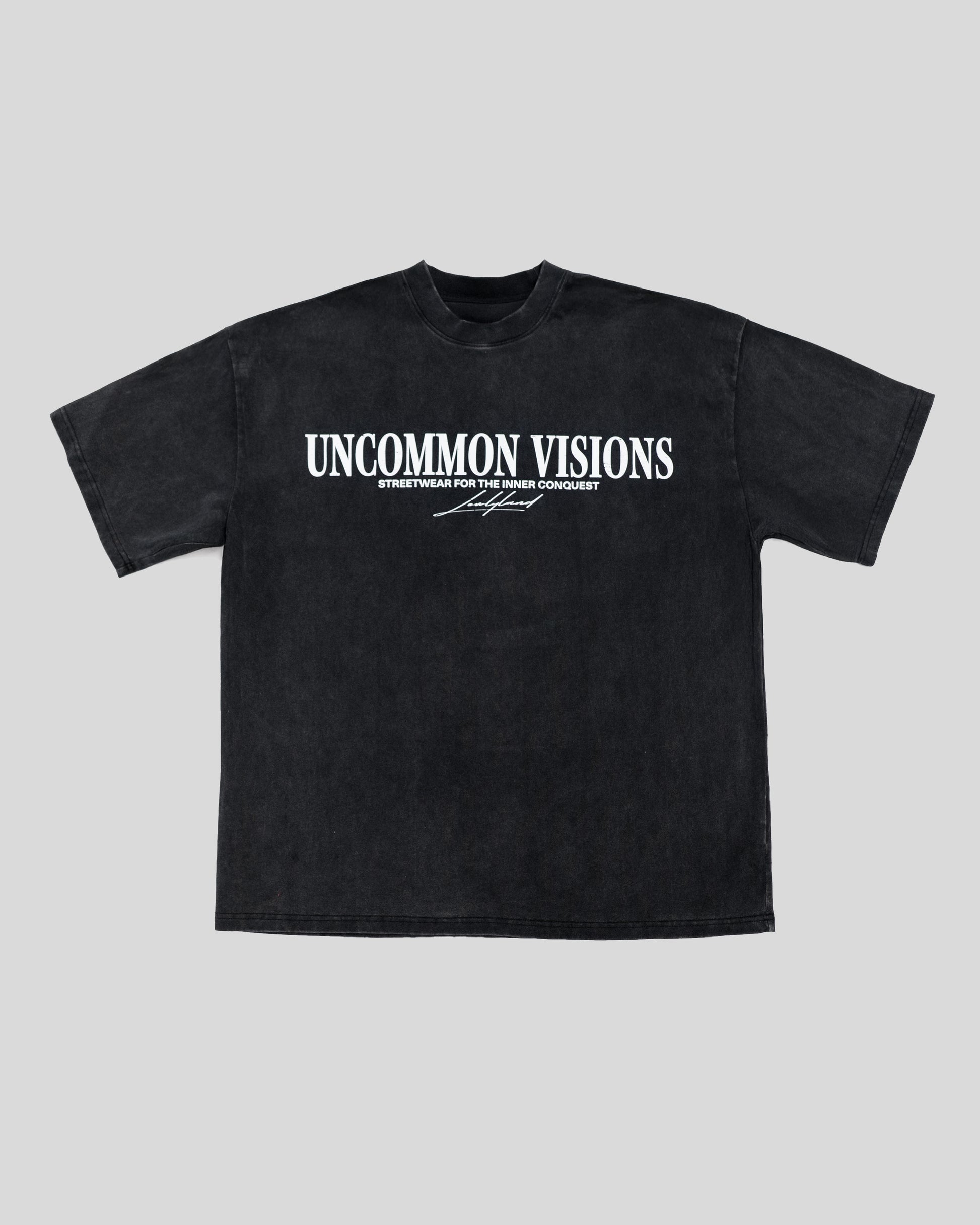 Introducing the Lowlyland 'Uncommon Visions' Oversized Tee in Jet Black & Charcoal.